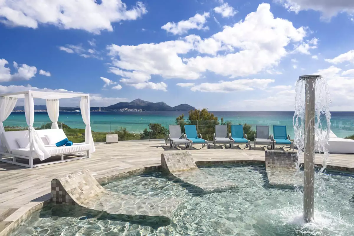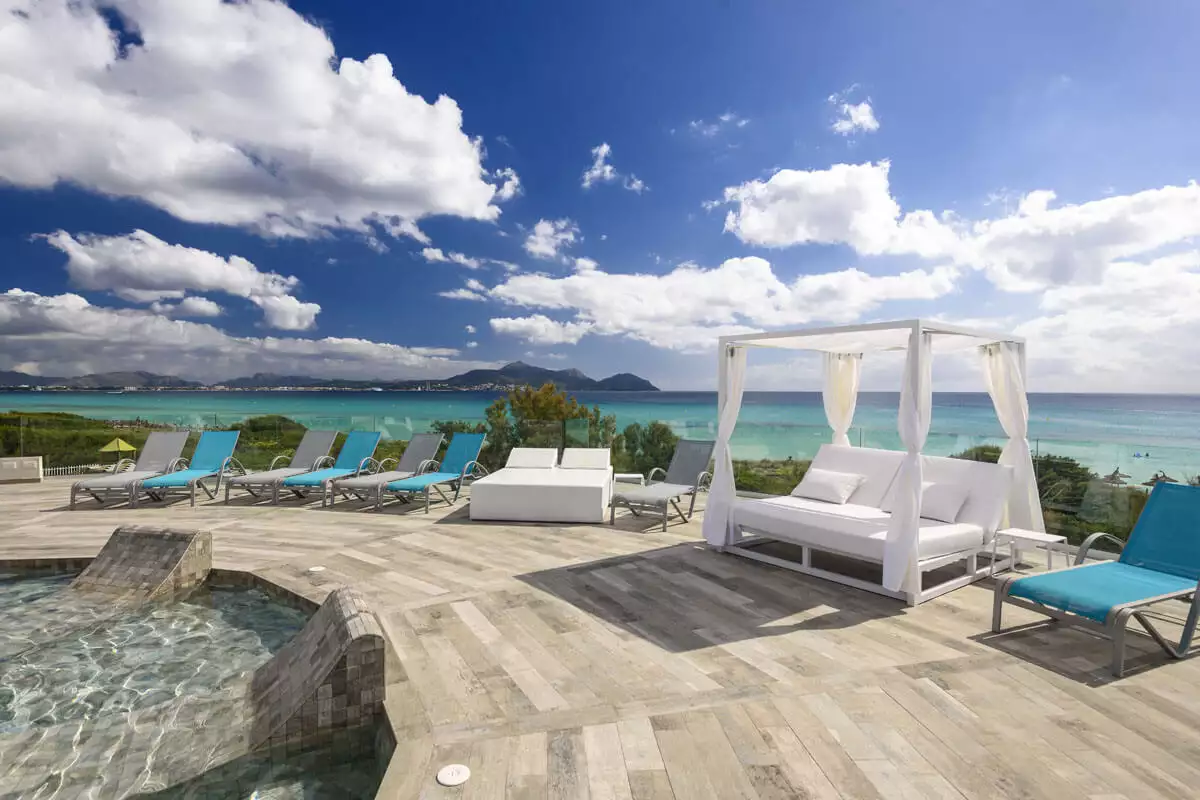 Acondicionamiento del bloque del snack/bar para la construcción en altura de una piscina con camas balinesas y hamacas donde disfrutar de una vista panorámica de la bahía de Alcúdia. Además de la rehabilitación de la cubierta de diferentes bloques para la construcción de dúplex con terraza privada, equipada con jacuzzi, y vistas al mar